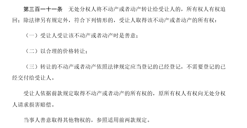 善意取得是所有權(quán)取得的一種特別方式。民法典第三百一十一條對(duì)善意取得制度作出了專門(mén)規(guī)定。