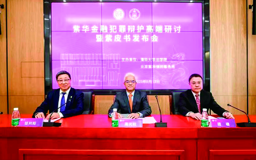5月13日,由清華大學(xué)法學(xué)院、北京紫華律師事務(wù)所共同主辦的紫華金融犯罪辯護(hù)高端研討暨紫皮書發(fā)布會(huì)在清華大學(xué)舉行。清華大學(xué)法學(xué)院院長周光權(quán)、北京紫華律師事務(wù)所主任錢列陽出席會(huì)議并致辭,清華大學(xué)法學(xué)院副院長程嘯主持,來自各界代表圍繞“金融犯罪的發(fā)展態(tài)勢及法律應(yīng)對”這一主題展開探討。會(huì)議期間,清華大學(xué)法學(xué)院紫華國際學(xué)術(shù)報(bào)告廳揭牌儀式同期舉行。