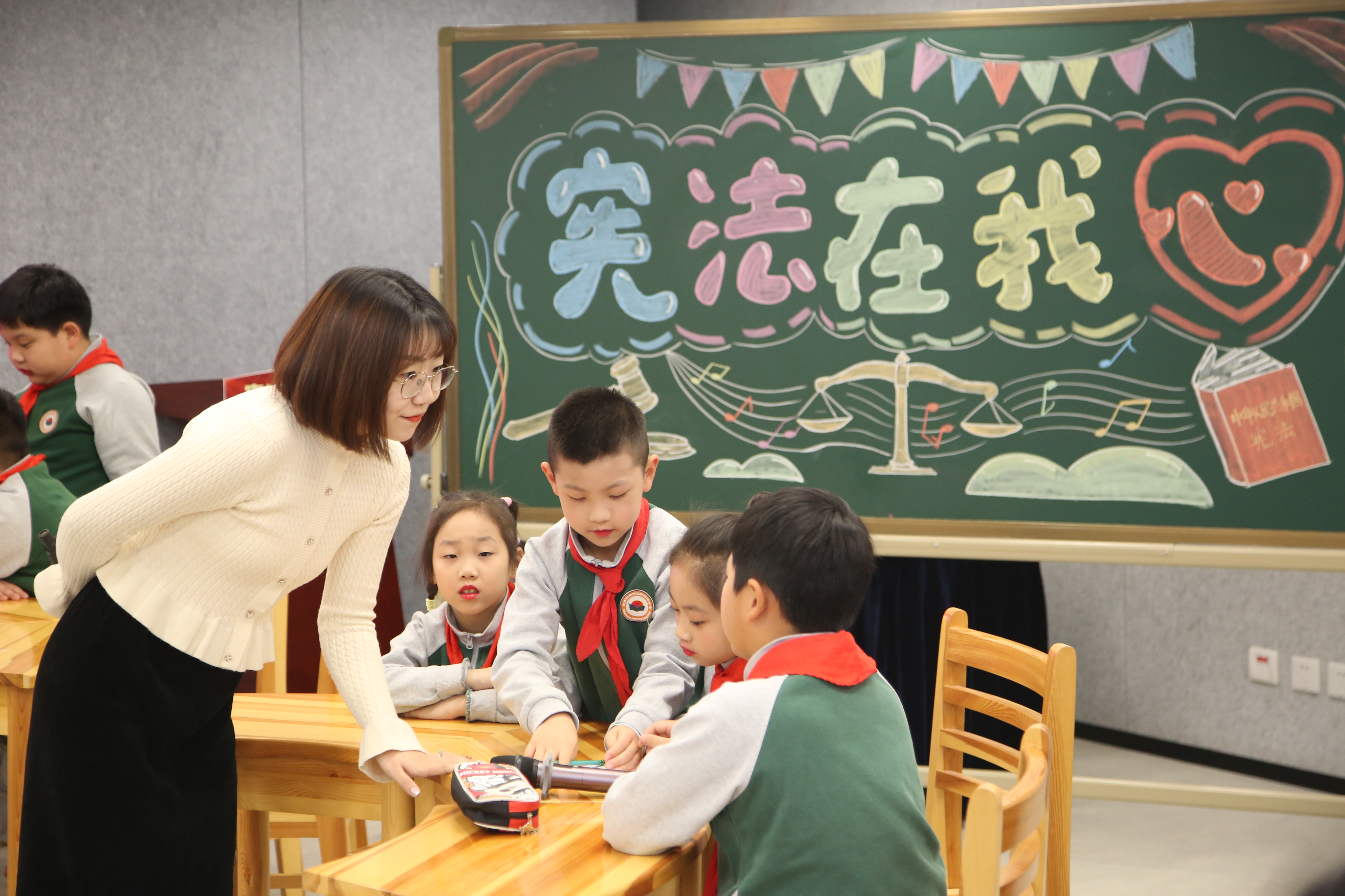 “憲法伴成長 家校社共振”主題活動上,北京市朝陽區(qū)將臺路小學張夢伊老師正在為學生們上“從憲法日說起”一課,帶領學生們以憲法日為主題開展口語交際訓練,提升學生對憲法日的認識和對憲法重要性的理解。