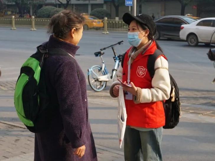 在西安市法律援助中心服務驛站,法律服務中心志愿者們幫助服務驛站向周邊群眾分發(fā)法律宣傳資料,普及驛站的服務地點和功能,同時耐心地講解法律知識。